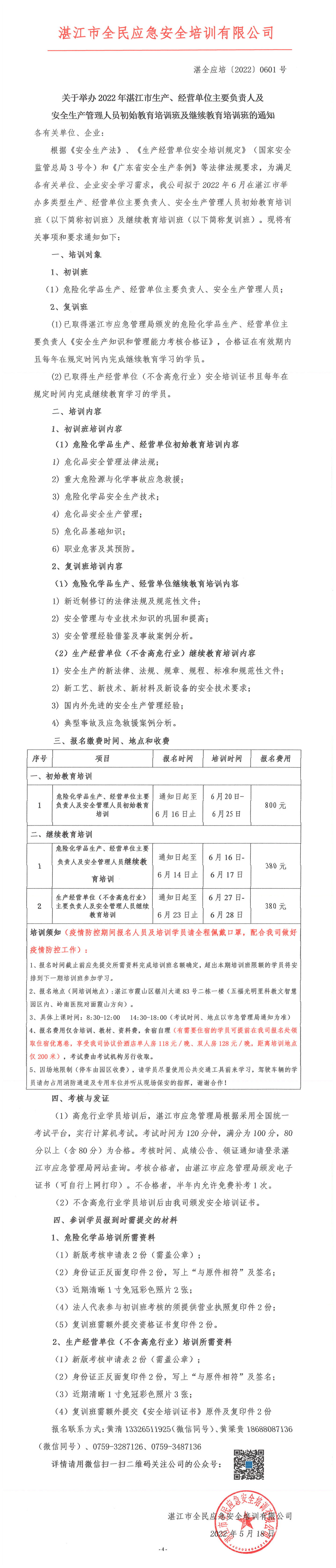 2022年6月湛江市生产、经营单位主要负责人及安全生产管理人员初始教育培训班及继续教育培训班的通知