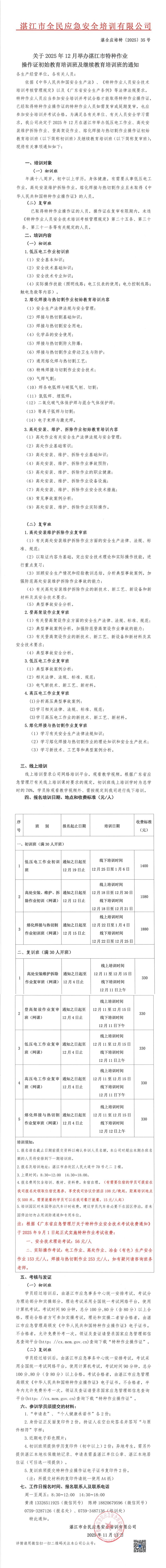 2025年12月高低压电工作业、高处安装维护拆除作业、登高架设作业、熔化焊接与热切割作业初始教育培训班及继续教育培训班的通知