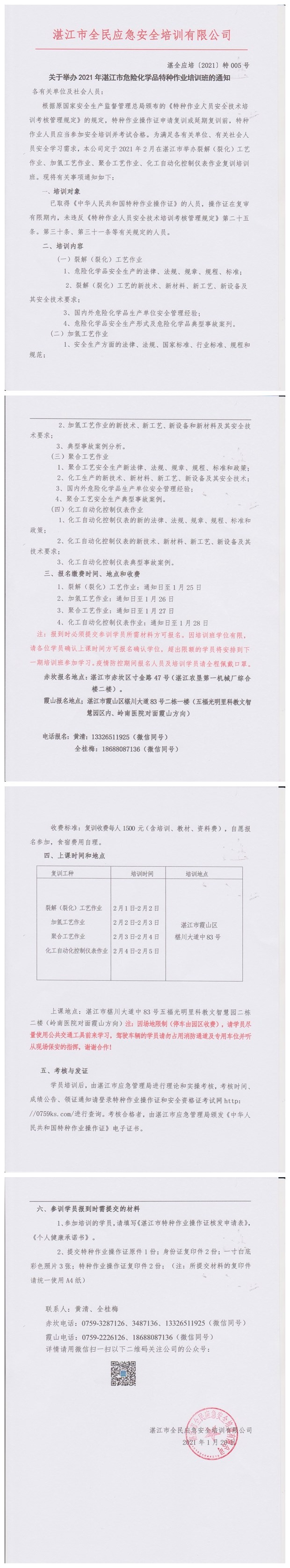 2021年2月1日-4日危险化学品特种作业培训班的通知