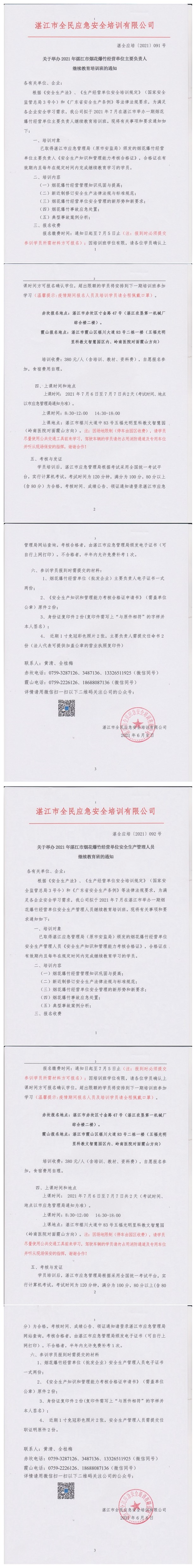2021年7月6日-7月7日烟花爆竹经营单位主要负责人及安全管理人员继续教育培训班通知