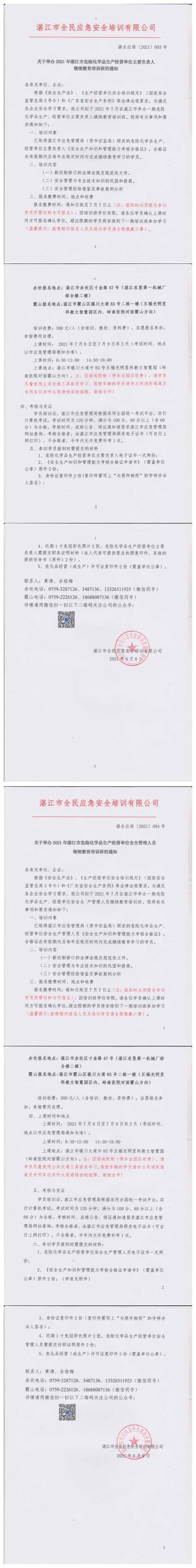 2021年7月8日-7月9日危险化学品生产经营单位主要负责人及安全管理员继续教育培训班通知