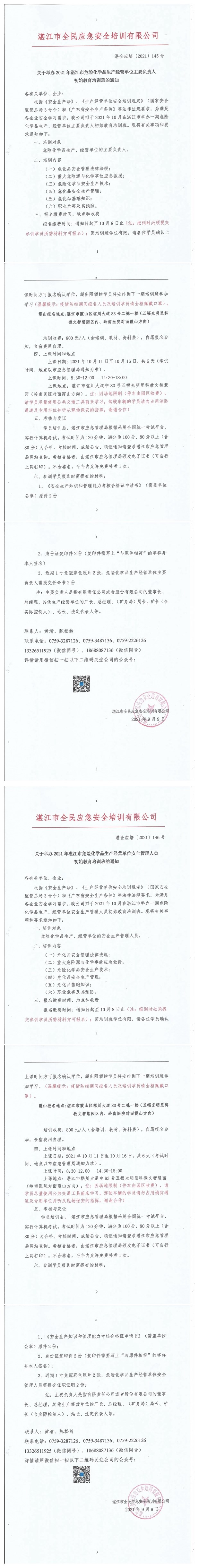 2021年10月11日-10月16日危险化学品生产、经营单位主要负责人及安全管理人员初始教育培训班通知
