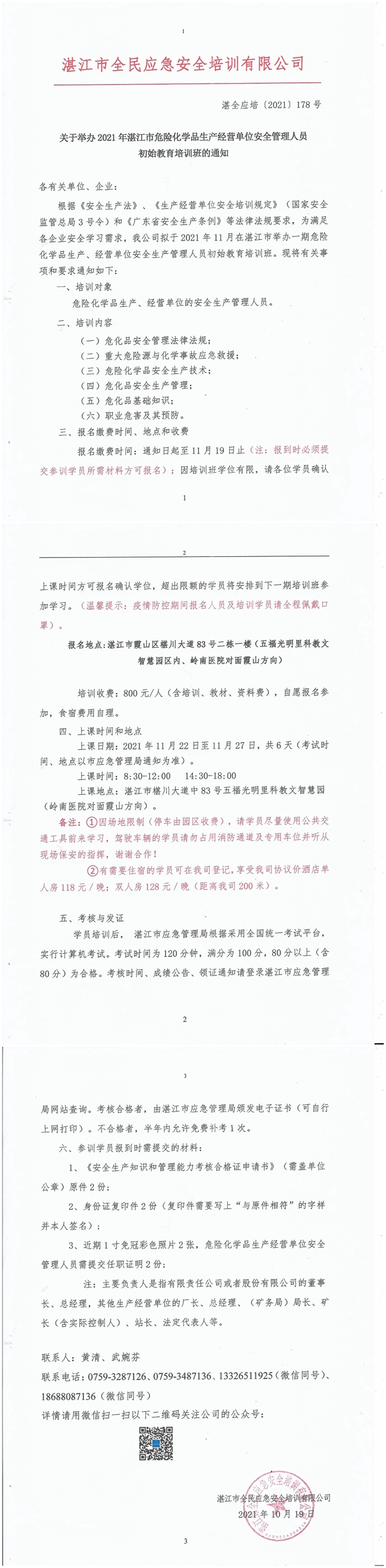 版权所有 Copyright(C)2018-2020 湛江市全民应急安全培训有限公司 粤ICP备18073301号