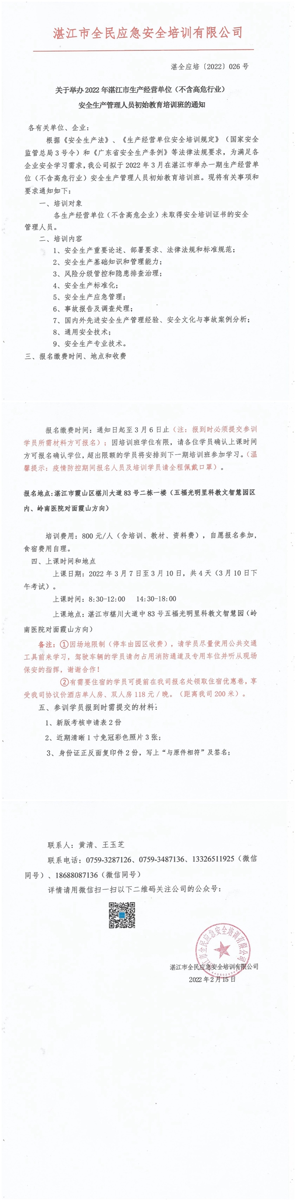 2022年3月7日-3月10日生产经营单位(不含高危行业)主要负责人及安全管理人员初始教育培训班通知