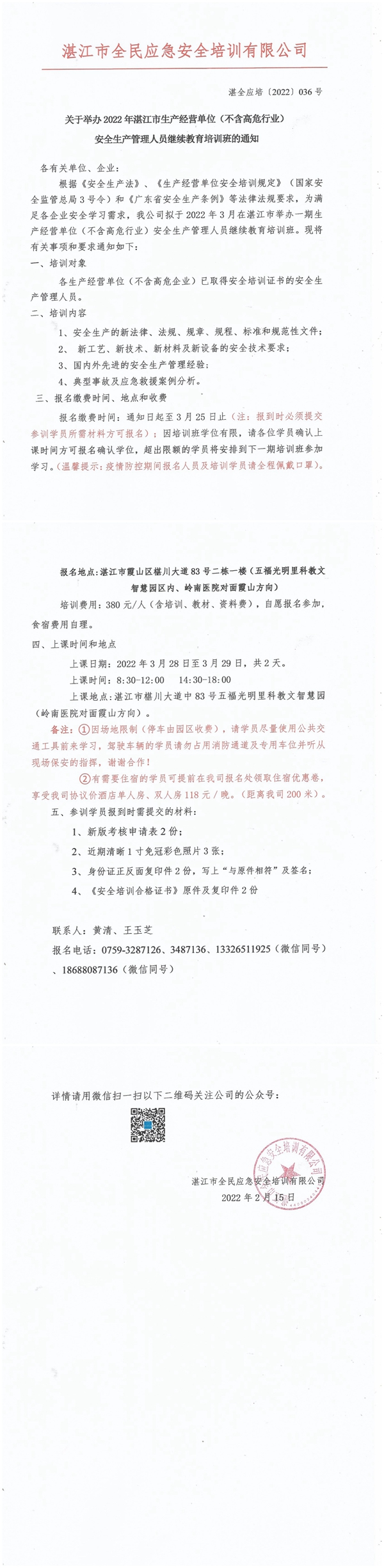 2022年3月28日-3月29日生产经营单位(不含高危行业)主要负责人及安全管理人员继续教育培训班通知